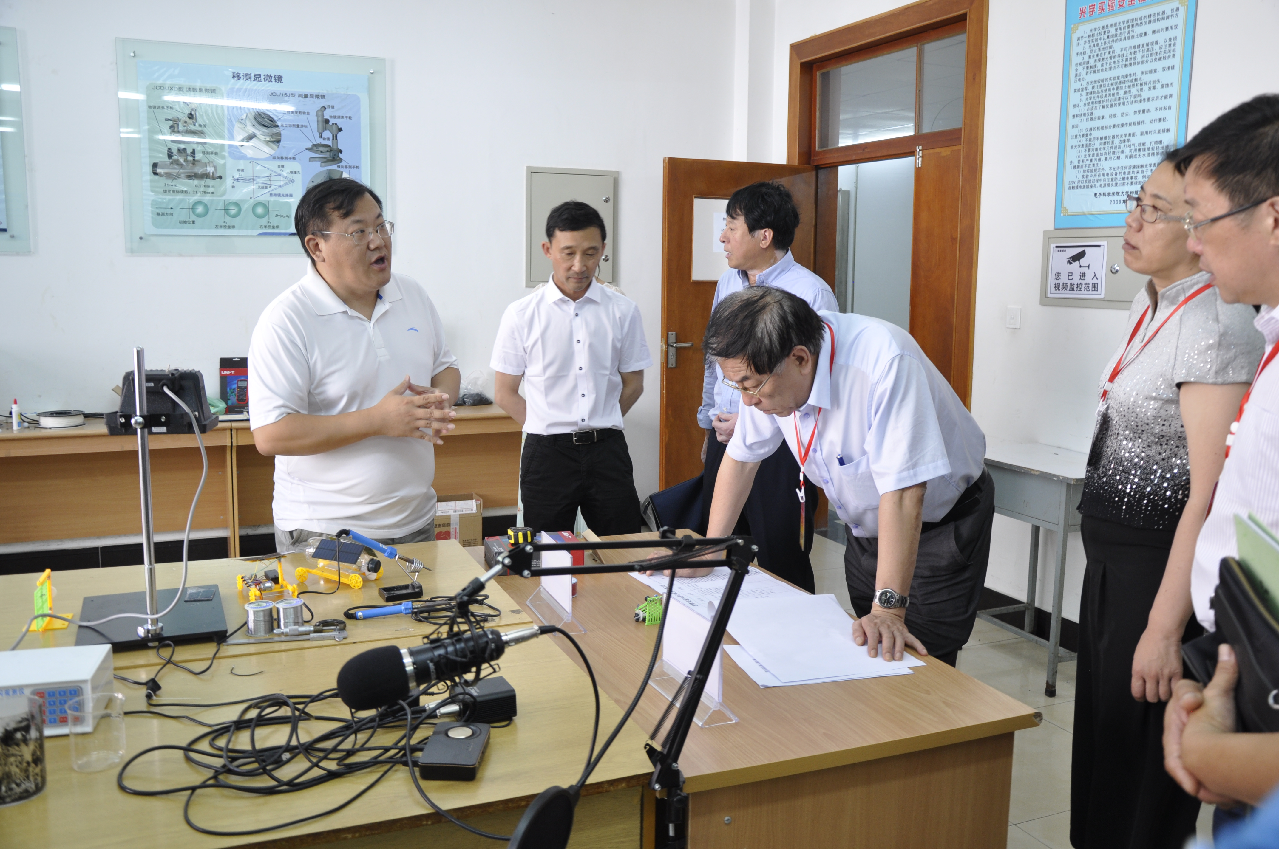 12日上午,本科教学工作审核评估诊断检查专家来我院进行走访检查。大学物理实验中心主任罗伟,针对学院基本情况及特色建设进行了简要介绍。罗伟主任将实验中心各实验室及实验设备、师生实验交流反馈流程进行了讲解,并展示了我院近年在各大赛事中所获佳绩情况。专家组在院系领导教师的陪同下,对我院实验室进行了参观。