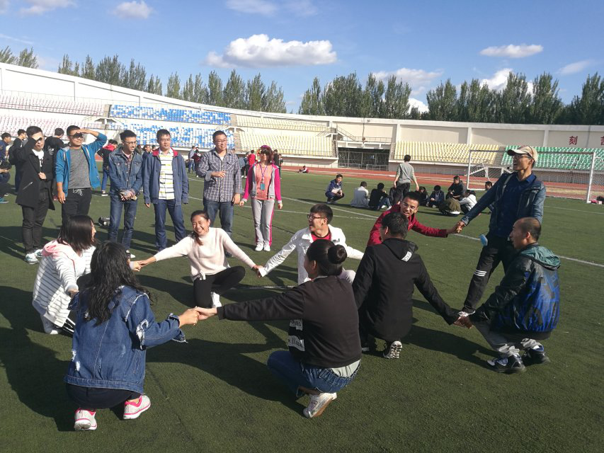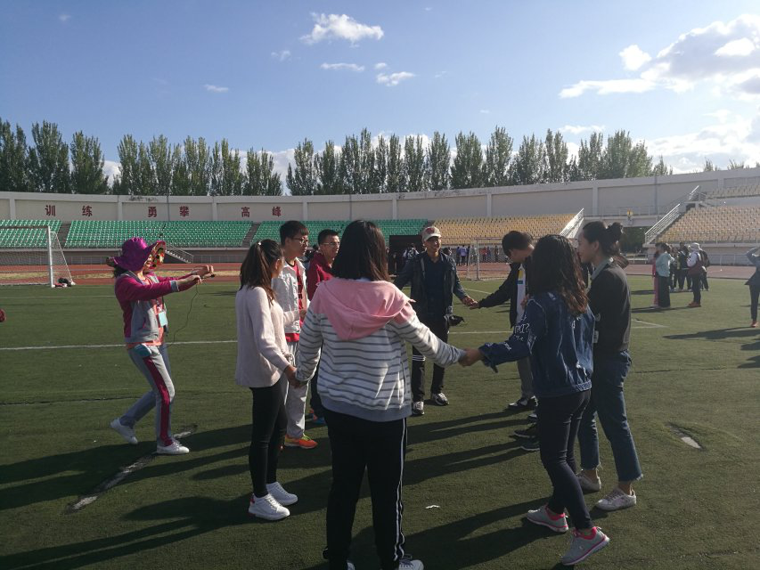 此次活动共分为四个环节。第一环节为准备活动,在祝老师的指导下,新生们开始了彼此的初次认识,大家做着自我介绍互相握手,初步认识之后,祝老师让新生们以小火车的形式围成一个圈,大家一起转圈并给前面的小伙伴们做着按摩,消除彼此之间的陌生感。第二个拓展项目:新生们分为三个队伍,每个队伍围成一个小圆圈,队员们轮流站在圆圈中心进行详细自我介绍,并在自我介绍之后闭上眼睛向后倾倒,由队员们合力接住他,各组队员默契配合,踊跃表现,在这样的游戏中新生们增进了彼此之间的信任感和熟悉感。拓展训练的第三个环节是每一组成员推选出一个队长,带领大家在15分钟内想出队名,定好队歌,设计造型并统一口号,各组队员集思广益,以本队独有的方式进行自我表现,可谓是“百花齐放,百家争鸣”,充分展示出了电子院研一新生独具的青春风采。素质拓展训练的最后一个环节是“九人六足”,即每组九个人只能有六个点着地,队员之间要相互连接一起前进,队员们积极参与,相互启发,辅导员张明老师也在大家身边帮着队员们出主意。整个现场沉浸在一片激烈的商讨声中,氛围高涨,竞技中不失和谐,加油声、喝彩声让活动氛围一次次到达高潮。这个看起来不可能完成的任务在队员们的相互配合和默契下圆满完成。每个队员都意识到全队同心,其力断金!