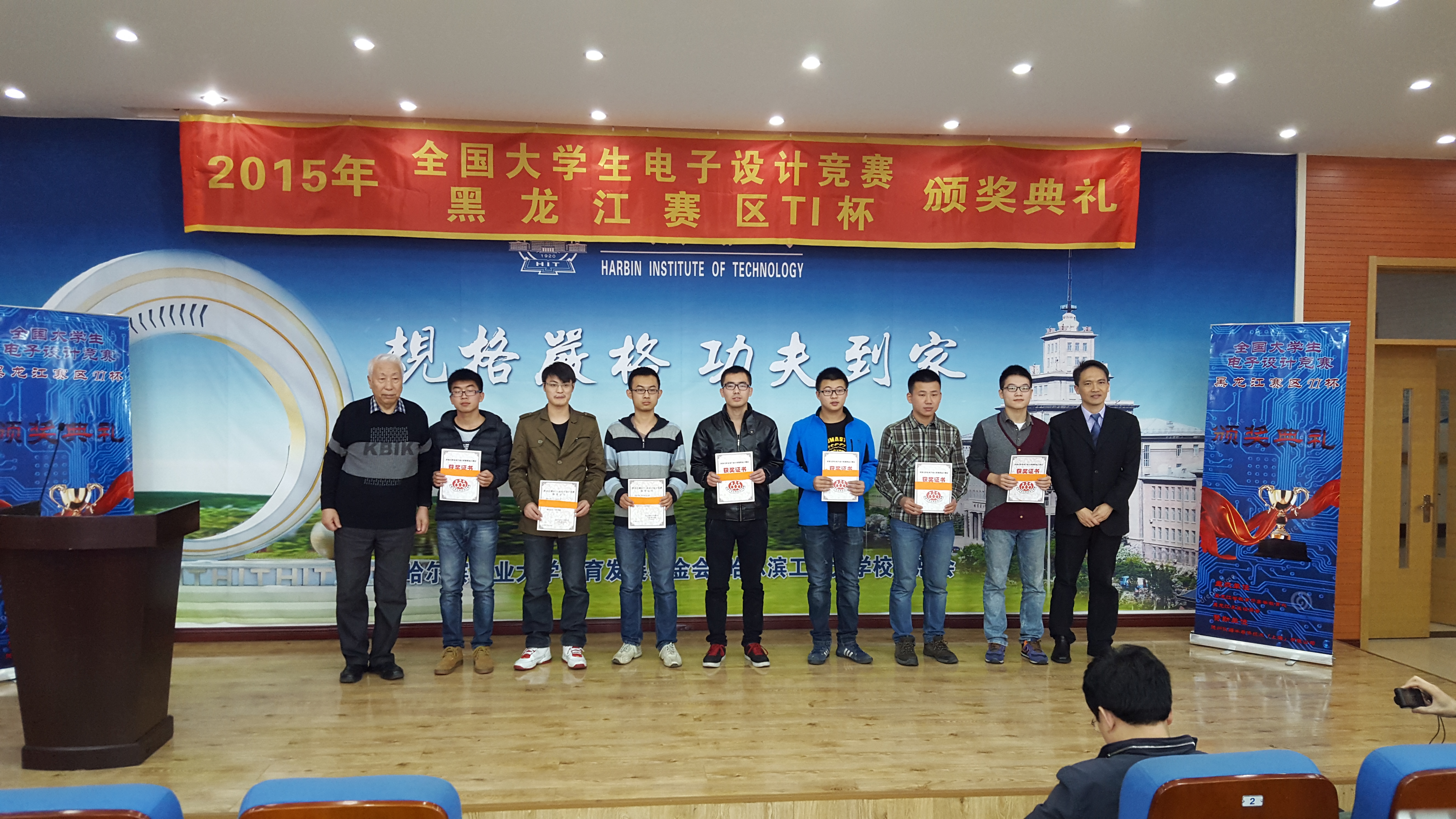 由教育部高教司和信息化产业部主办的2015年全国电子设计竞赛颁奖大会于11月14日在哈尔滨工业大学结束,经过初赛和复赛测评,bevictor伟德国际1946代表队在教务处和电子科学学院教师及全体参赛学生的共同努力下,取得了可喜的成绩。其中,我校由刘东明老师指导的作品“数字频率计”获得国家级二等奖1项;由李玉爽、邢志方等教师指导的“频谱分析仪”、“双向DC-DC变换”等作品获得黑龙江省一等奖3项、二等奖1项、三等奖1项。