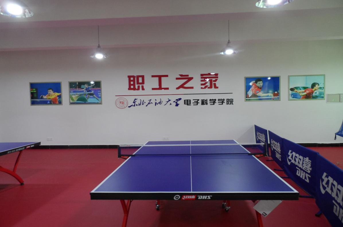 为了落实校工会职工之家建设的要求,丰富教职工的业余文化生活,加强教职工的身心健康,保证教学、科研和管理的正常进行,2016年3月21日,电子科学学院职工之家正式落成,职工之家内铺设塑胶100平米,内有乒乓球台3副、乒乓球发球机1台、台球案子1个、跑步机1台、健身自行车1辆、组合健身器1台、哑铃1套、拳击练习器1个、沙狐球台1个、腹肌板1个。