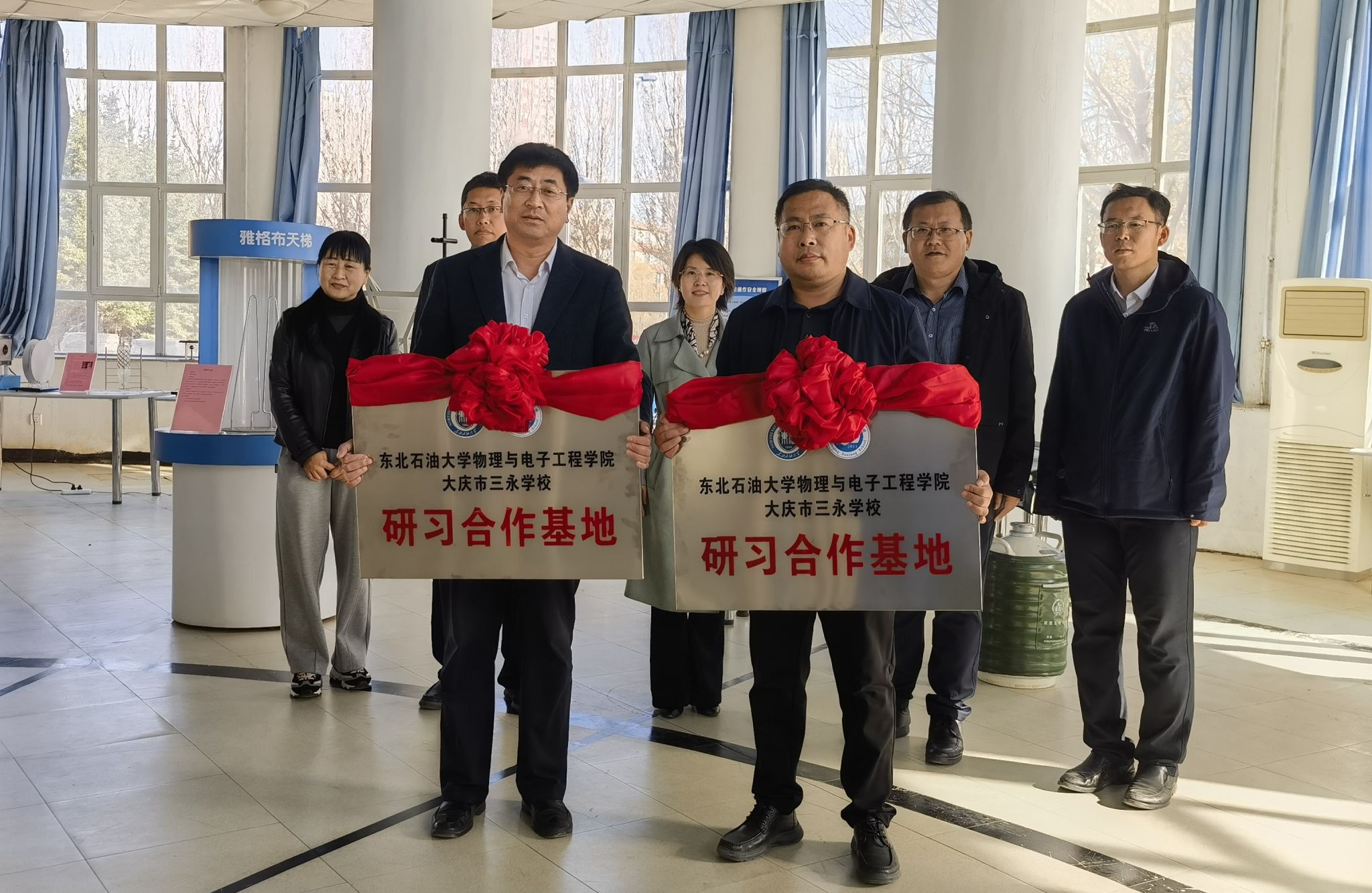 为贯彻党的二十大精神,深入学习习近平总书记关于教育的重要论述,进一步加强高校与中学的深入合作,推动高校资源向社会开放,增强我校社会服务能力,2023年10月18日,伟德国际VICTOR1946与大庆市三永学校共建的“研习合作基地”在bevictor伟德国际1946举行了挂牌仪式。伟德国际VICTOR1946院长韩建、物理系主任、大学物理实验中心主任,大庆市三永学校党委书记陈向东、教学校长、教务处主任以及其他教师代表参加了挂牌仪式。