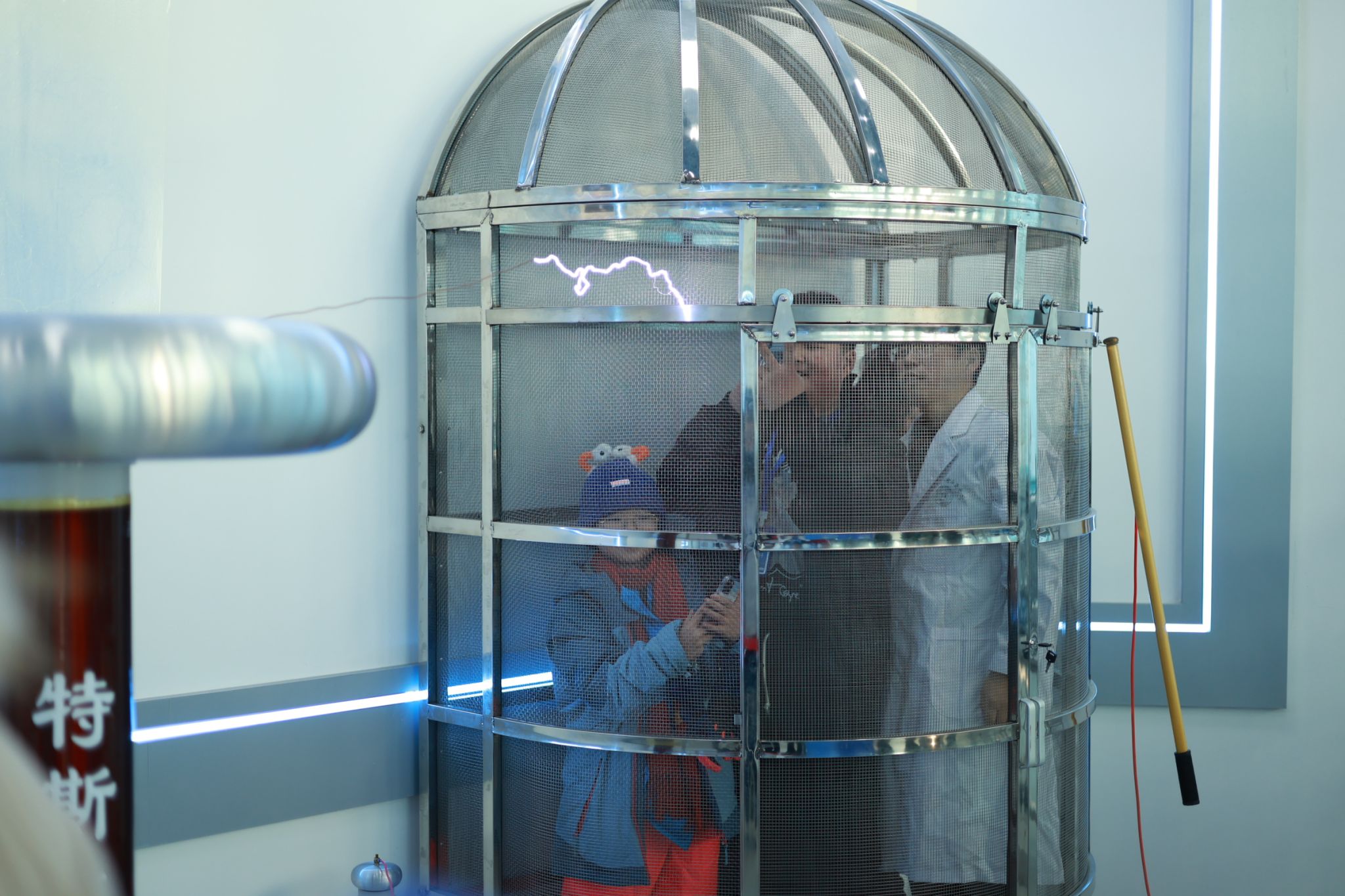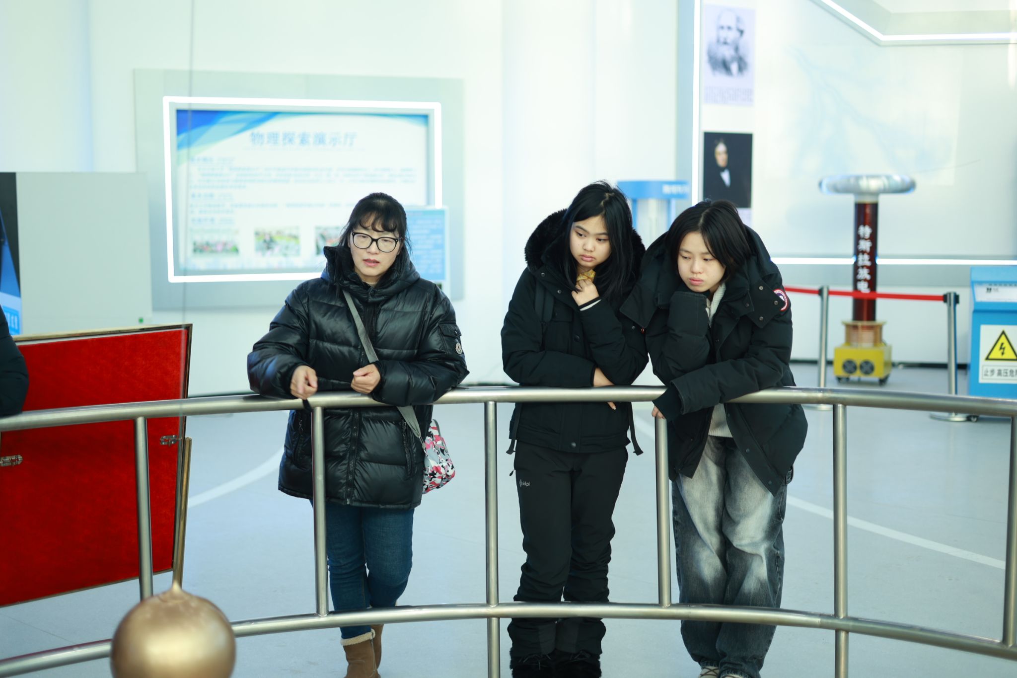 在活动中,物理系教师为参观者进行了生动的讲解与实验演示。营员们亲身体验了多项物理现象,感受到了科学的魅力。例如,他们在高压3.5万伏的环境中观察到“静电屏蔽”原理,了解到在零下194°的条件下,普通铁块如何迅速变为可在强磁场中“神奇悬浮”的超导体。此外,营员们还体验了“能量转换与守恒”的运动感,理解了“傅科摆现象”所展现的“坐地日行八万里”的奥秘,以及“光学幻象与窥视无穷”的神秘。