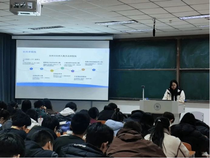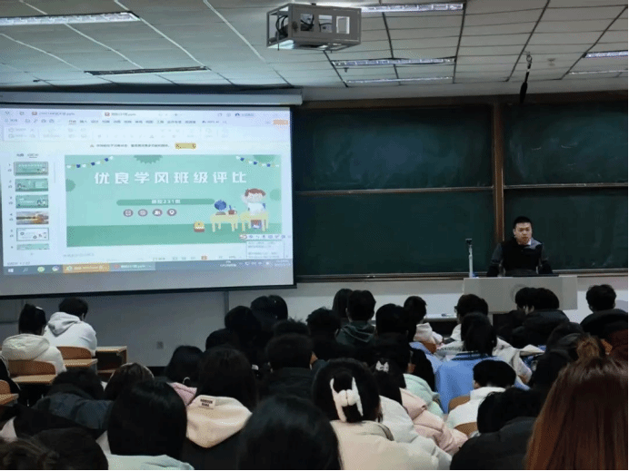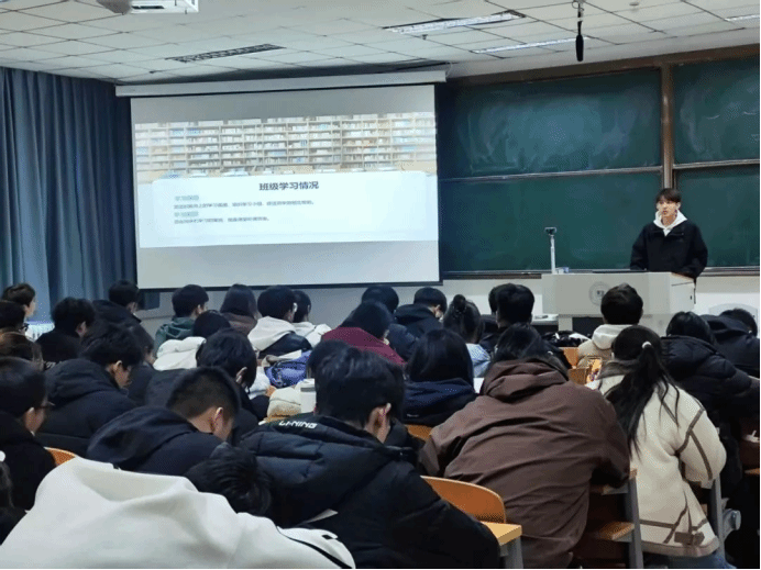 为激发同学们学习热情,营造良好班风,24级辅导员张雪莹在年级大会上着重强调新学期各班班委需密切关注班级动态,团结同学,共同奋进,提升自身综合水平,为未来发展筑牢根基。同时,24级各班根据班级学习情况进行汇报,这让班级班委会成员坚定督促班级成员学习的决心,同学们纷纷表示,集体荣誉和个人荣誉紧密相连,班级内部要互帮互助,携手打造优秀班集体。