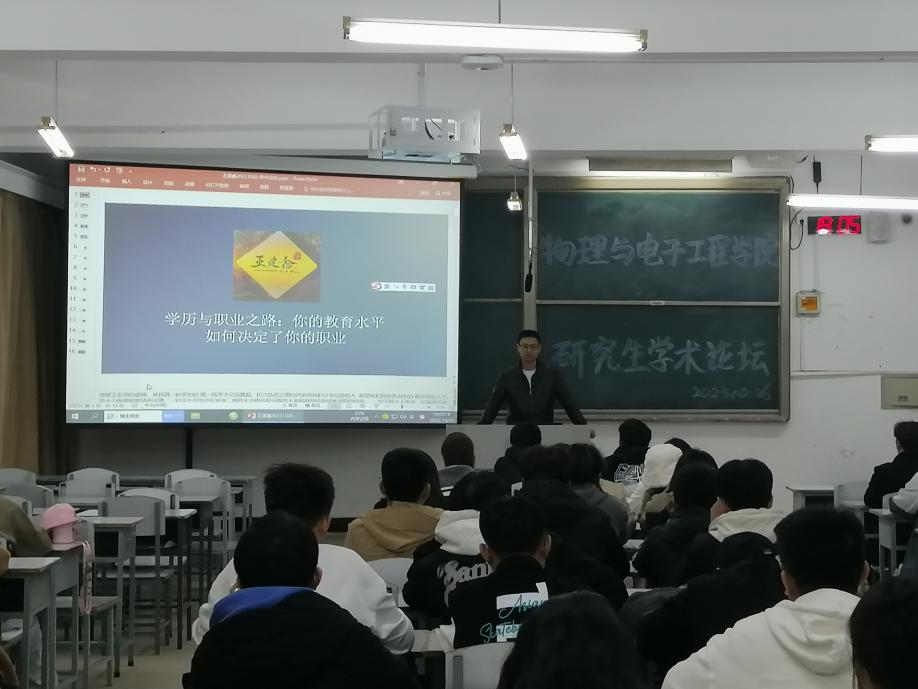 为配合学院学风建设系列活动,解答研究生对学习和择业上的疑惑,营造良好的学术氛围,伟德国际VICTOR1946于10月26日18:00在1F-216举办研究生第二十六期学术论坛,2022级博士研究生王建鑫受邀进行分享,我院辅导员张雪莹以及2023级全体研究生参加本次论坛。