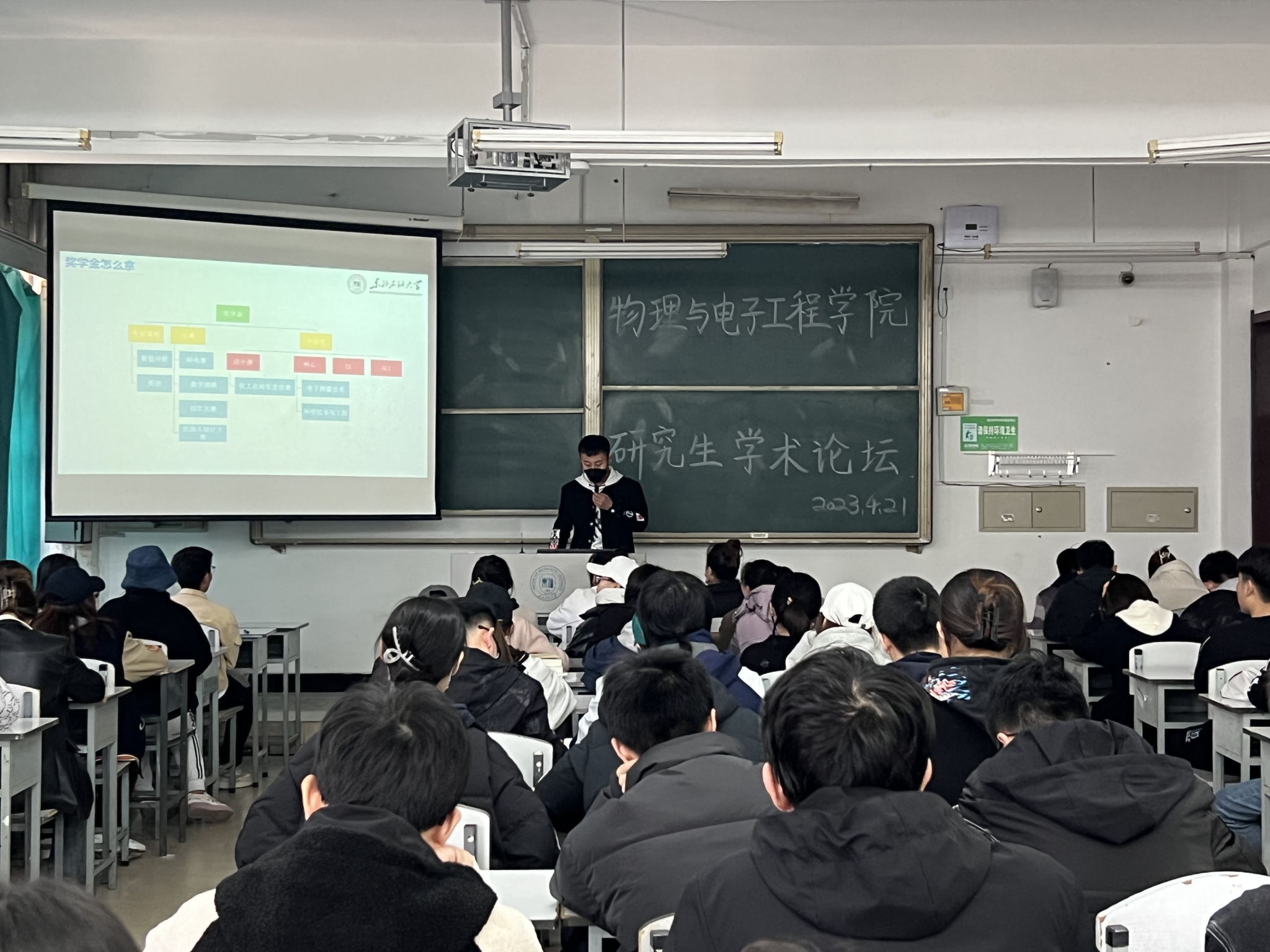 首先,陈先瑞详细介绍了获取奖学金应当做哪些准备,分享了研一到研三每个阶段的学习任务,强调了在互联网大环境的严峻形势下如何高效投递简历,最后,他告诉同学们要劳逸结合,多去参加各类丰富多彩的活动,以锻炼自己的组织能力及语言表达能力。同学们开始谈论并向陈先瑞进行提问,其中,关于“在找工作中应该学什么基础书籍”,他耐心地进行了解答。