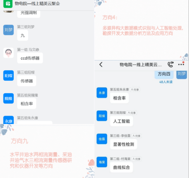 首先是“快问快答”游戏。由主持人介绍规则:先随机指定某一课题方向并在倒计时结束后,在群内进行抢答发出该研究方向的三种经典解决方法,活动期间,同学们集思广益,踊跃发言,不仅提高了同学们的互动性,也开阔了同学们的眼界。