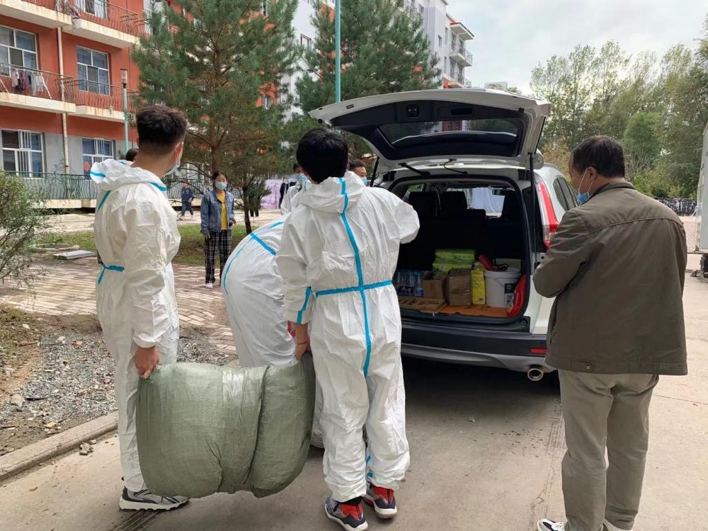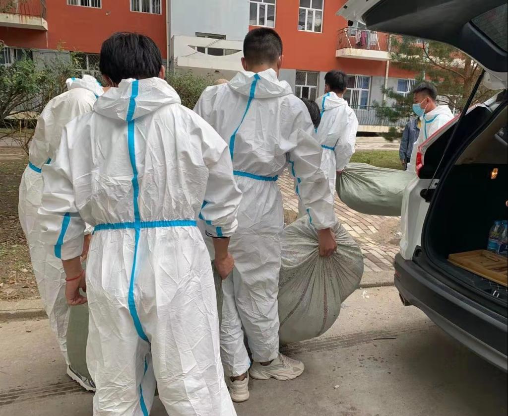 并且姜老师在每位志愿者的防护服上都写下了醒目的三个字“物电院”