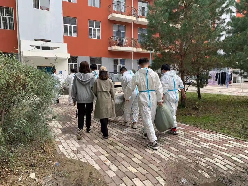 师兄师姐把师弟师妹的行李从音乐厅搬到寝室楼下