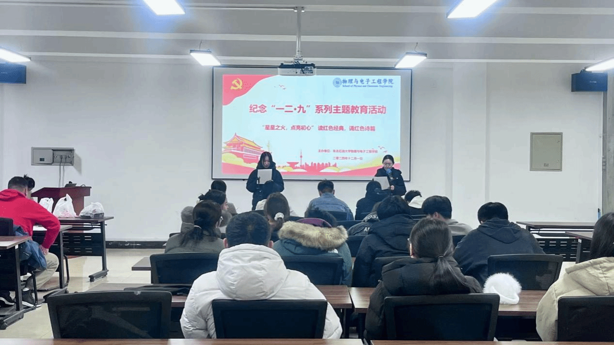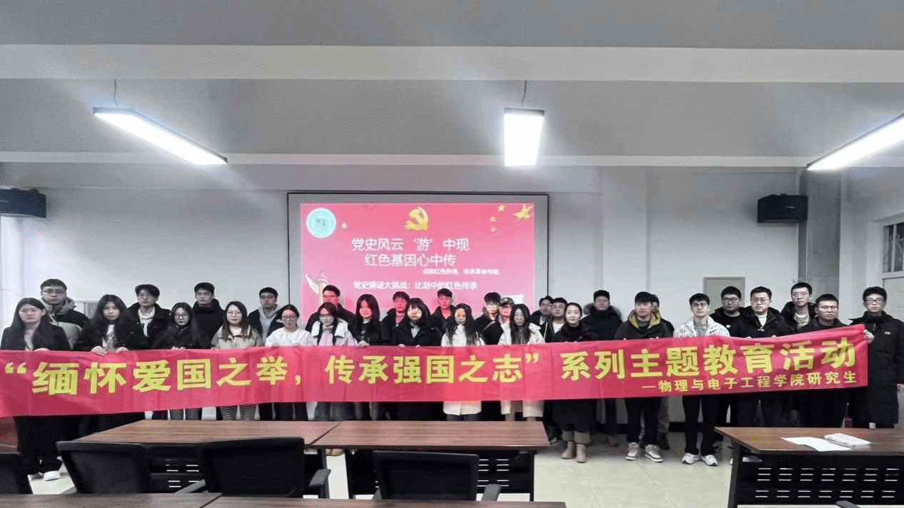 首先,我院开展了“学党史、悟初心”活动,组织物电院2023级、2024级全体在校研究生观看纪录片《大抗战》第12集一二九运动。回眸那段沉痛的历史,我们仿佛看到了在1935年12月9日,北平大中学生数千人举行了抗日救国示威游行。他们高呼着“停止内战,一致对外”“打倒日本帝国主义”等口号,以青春的热血和无畏的勇气,展现出了强烈的爱国情怀和民族担当。那是一段充满了艰难险阻与不屈抗争的历史,无数青年学子为了国家的独立、民族的尊严,不惜抛头颅、洒热血。