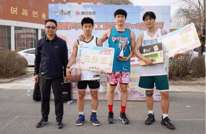 为了丰富校园文化生活,为学校阳光体育文化节预热,鼓励同学们“放下手机,走出寝室,运动起来”~伟德国际VICTOR1946举办了3v3篮球邀请赛,全校共有40支球队参加比赛。体育部贾智丰主任、时光副主任和院党委副书记王东明参加本次活动并为决赛前三名队伍颁奖。