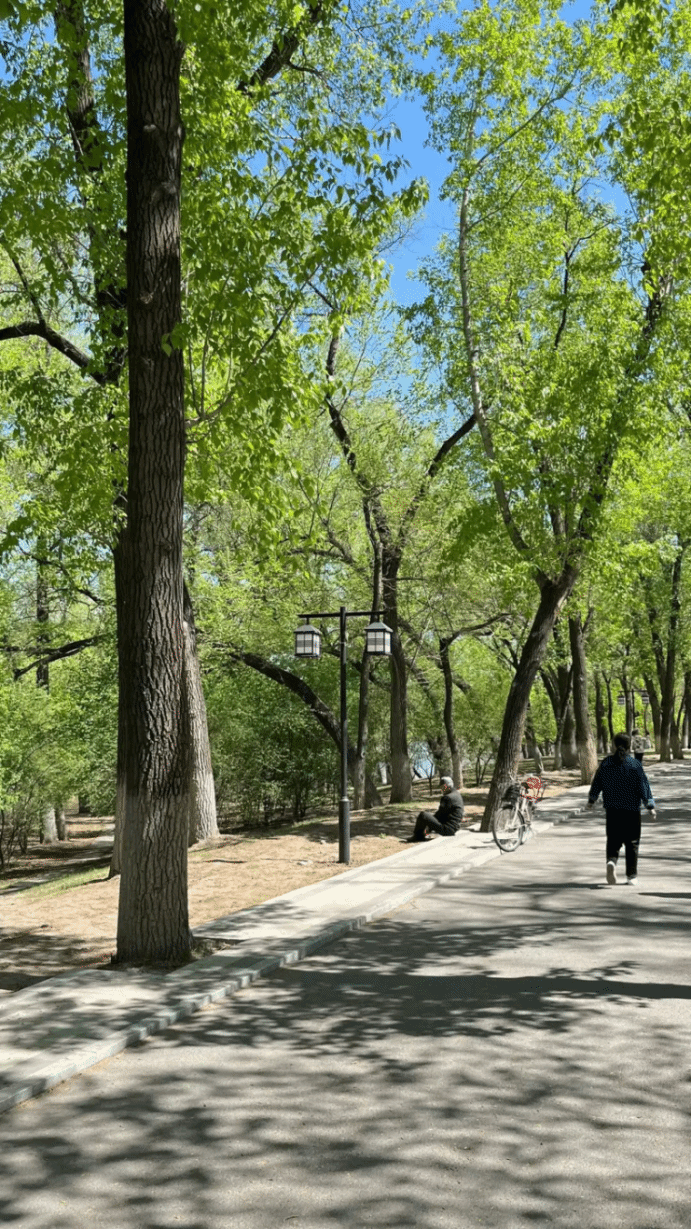 在春季的校园里漫步,