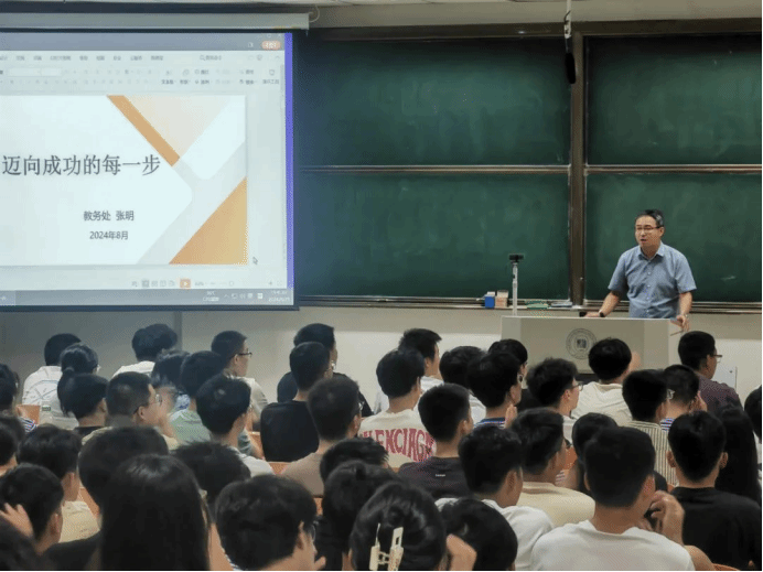 为加强2024级新生对高等教育管理制度的认识与理解,确保每位学子明确学习目标,促进个人发展与学校管理和谐统一,伟德国际VICTOR1946于8月29日晚18:30在主楼C401开展学籍管理规定教育大会,本次大会邀请学校教务处副处长张明老师进行讲解,我院党委副书记王东明老师主持。